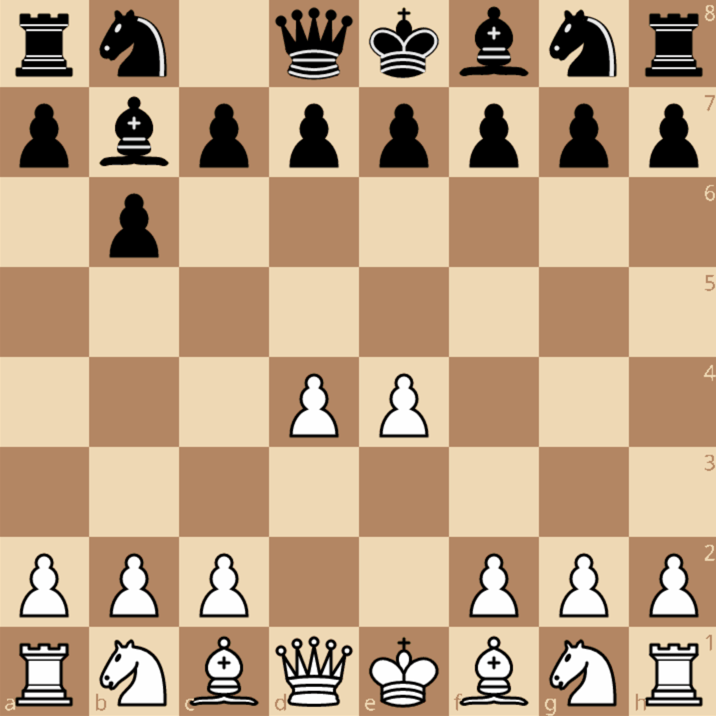 Классическое развитие после 1. e4 b6 выглядит так: