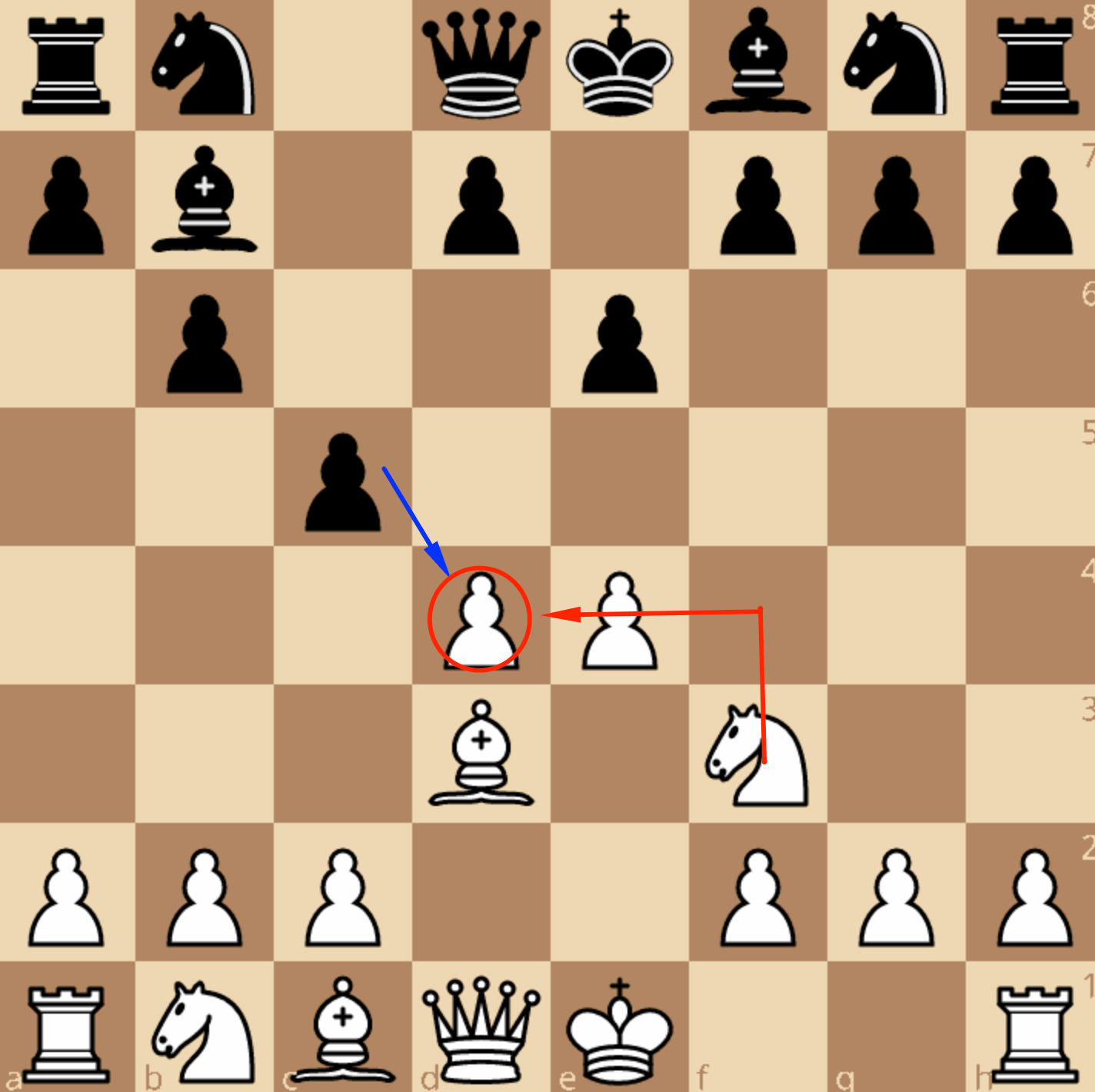 После, например, 4. … e6; 5. c3 … (укрепляя центр)